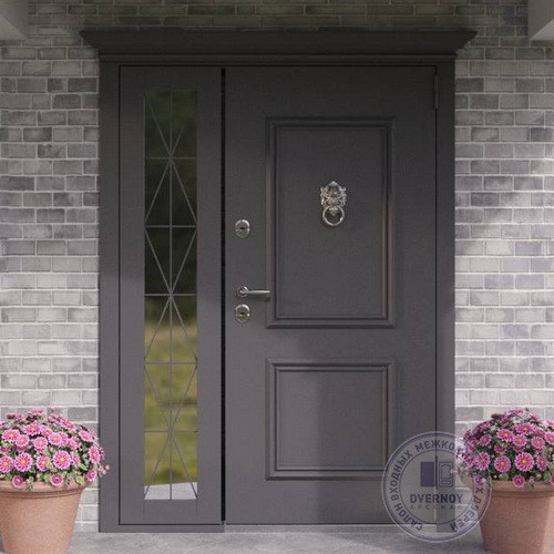 Дверь в коттедж с покраской по RAL 7024 | Боковая фрамуга